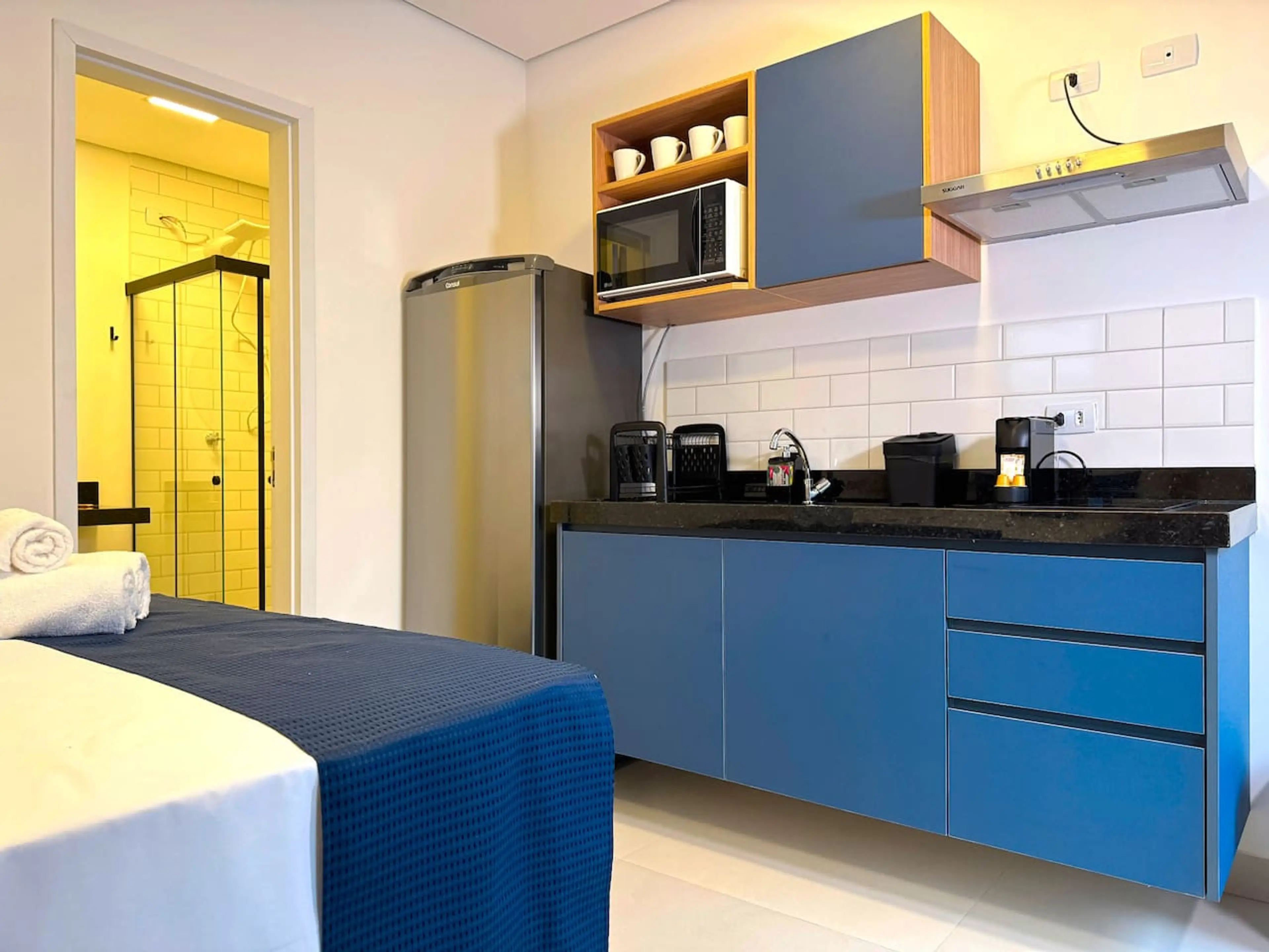 Positive: Os estúdios são todos novos, estavam todos em perfeitas condições. O anfitrião é extremamente solícito, atende rapidanmente ao solicitado. A localização é excelente, o bairro é ótimo e tem muitas opçoes de padarias, mercadinhos, supermercados, farmácias, restaurantes etc. Para receber delivery não há nenhuma complicação. O local é bem seguro tb. Todas as comodidades oferecidas funcionam bem e estavam em perfeitas condições.